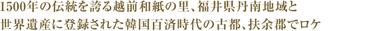一方で、和紙組合の理事長、石川役の日野陽仁さんや見習い和紙職人、宇野役の森永悠希さんには、文化の継承というテーマを担っていただきました。お二人とも真顔がとても優しいので、宇野と石川のツーショットは見ていて癒されます。福井出身の日野さんには、石倉さんの方言指導でも活躍していただきました。